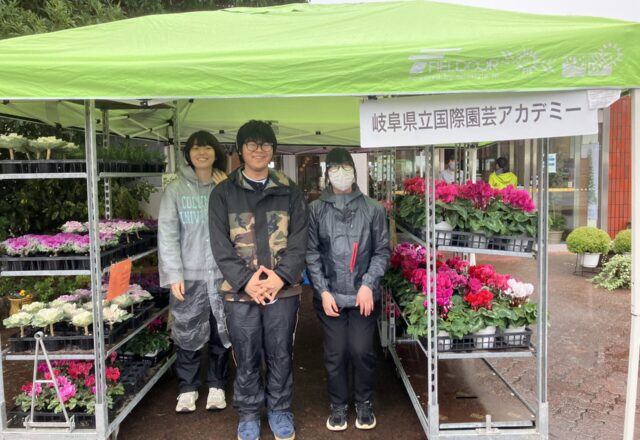 12月20日 東谷山フルーツパークで花販売を行いました。 あいにくの雨でしたが、学生の育てたシクラメンやハボタン、アカデ...