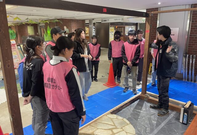 12月17日、イベントディスプレイ実習は、JR岐阜駅アクティブGの現地設営作業です。学校で仮り組みを行ってきたので、現場...