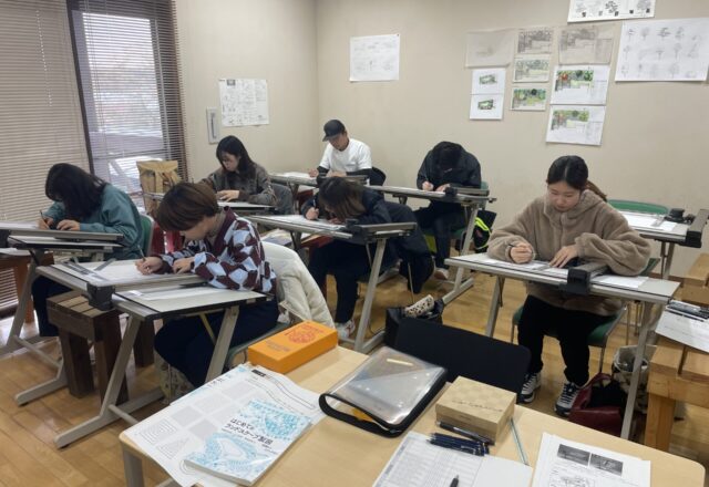 12月8日、はじめての製図実習では、図面の必要性、役割などを考えることから始めました。そして、線の太さの違いによる描き分...