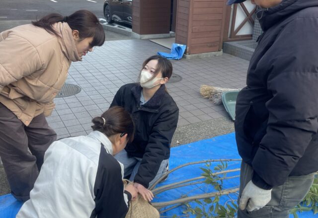 今日は、アカデミー1号温室で栽培している切り花用ガーベラの葉かきを行いました。今年は気温が高く例年より2週間程度早く行いました。ガーベラの管理は収穫を含めてはさみ等の道具は使用しません。葉かきは、葉を株元から引き抜くように行います。葉かきを行うことで株元の風通しをよくし病気を防ぎます。1年生のみなさん、コツはつかめましたか?