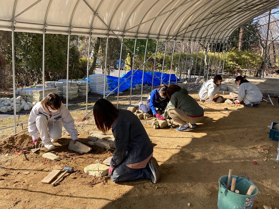 2月9日は、非常勤講師の佐竹康太郎先生の指導による「敷石」の施工実習です。