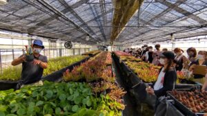 最後の訪問地は福岡の杉本神龍園です。新しい感性の新進気鋭の観葉植物生産者です。通常は視察を受け入れていないとの事ですが、視察を受け入れる代わりに学生たちの若い視点を聞きたいという事で特別に実現しました。