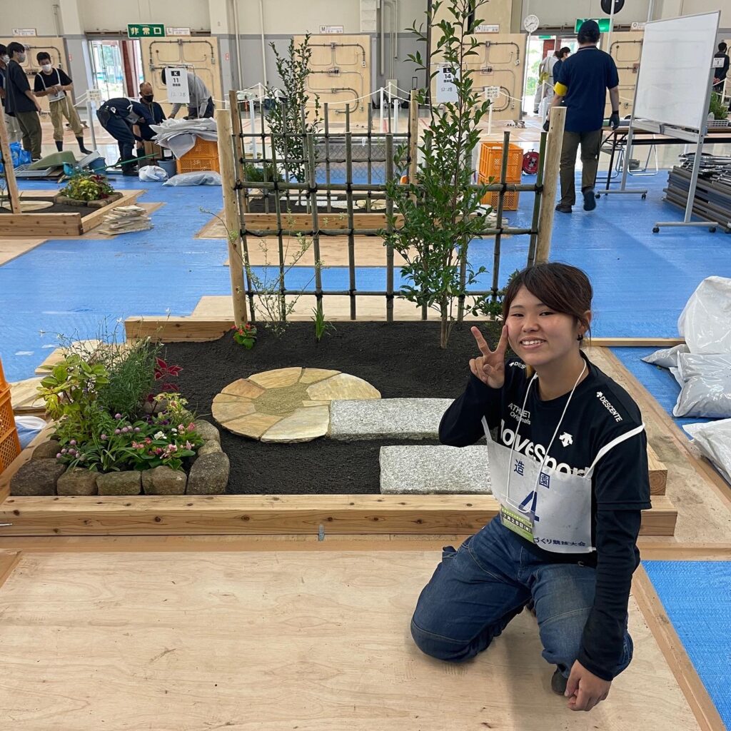 28日は競技となります。竹垣の制作、敷石・縁石・乱張りの敷設、植栽、整地を3時間30分の制限時間内に行います。