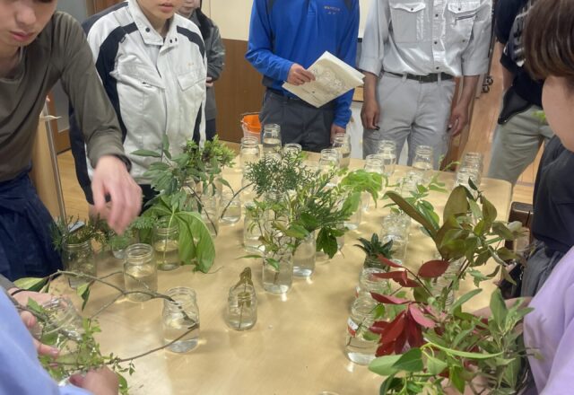 4月20日、3級造園技能検定対策実習と2級造園技能検定対策実習では、1年生と2年生が合同で判断等試験対策のため樹木の枝葉...