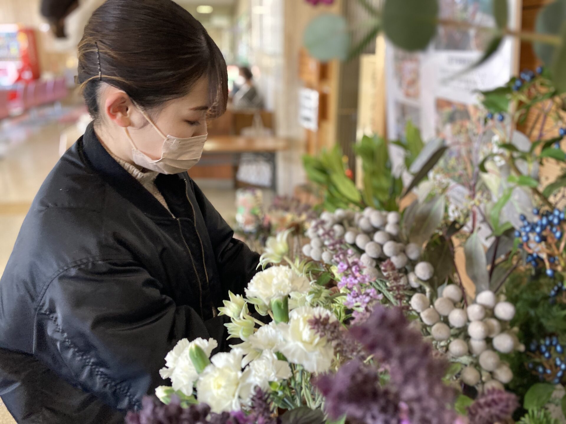 12月10日 『卒業研究・卒業制作』で卒業生が指導に来てくださいました。 ウェディングブーケやヘアーオーナメントの制作方...