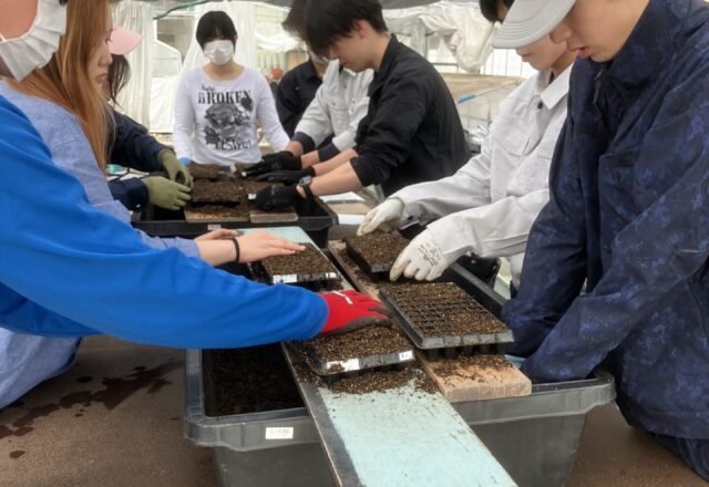 3月5日 花き生産コース1年生が、花壇苗生産者でインターンシップを行っています。春夏ものの花壇苗生産の繁忙期で、今日はポ...