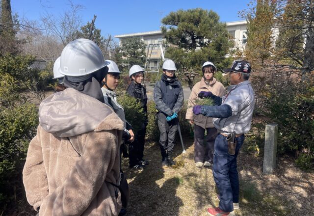 2月18日、造園施工・管理実習Ⅱでは、マツの剪定を行いました。冬場の剪定は、葉むしり(もみあげ)といって、古い葉を手でも...
