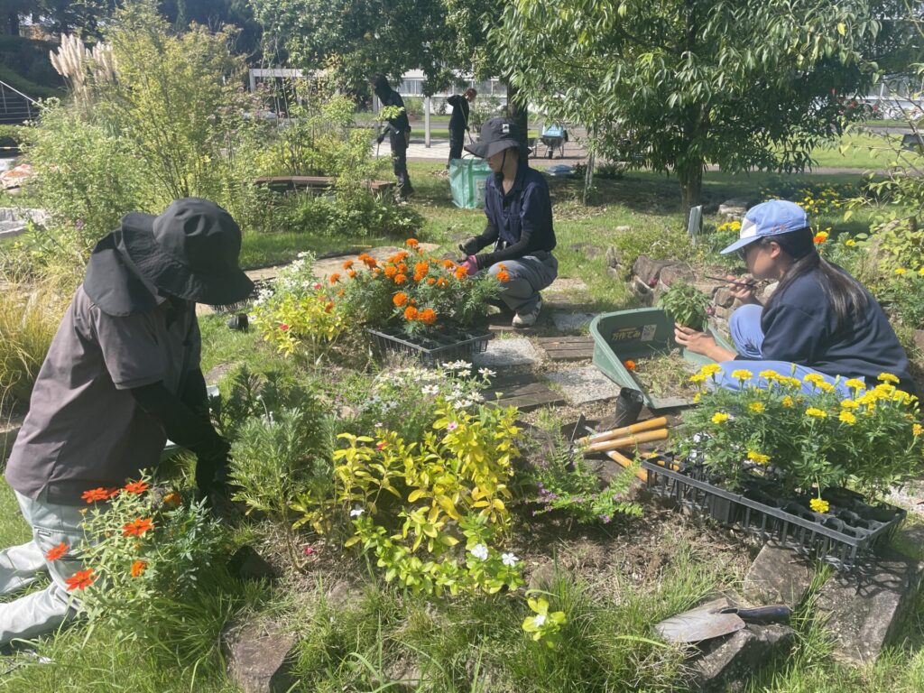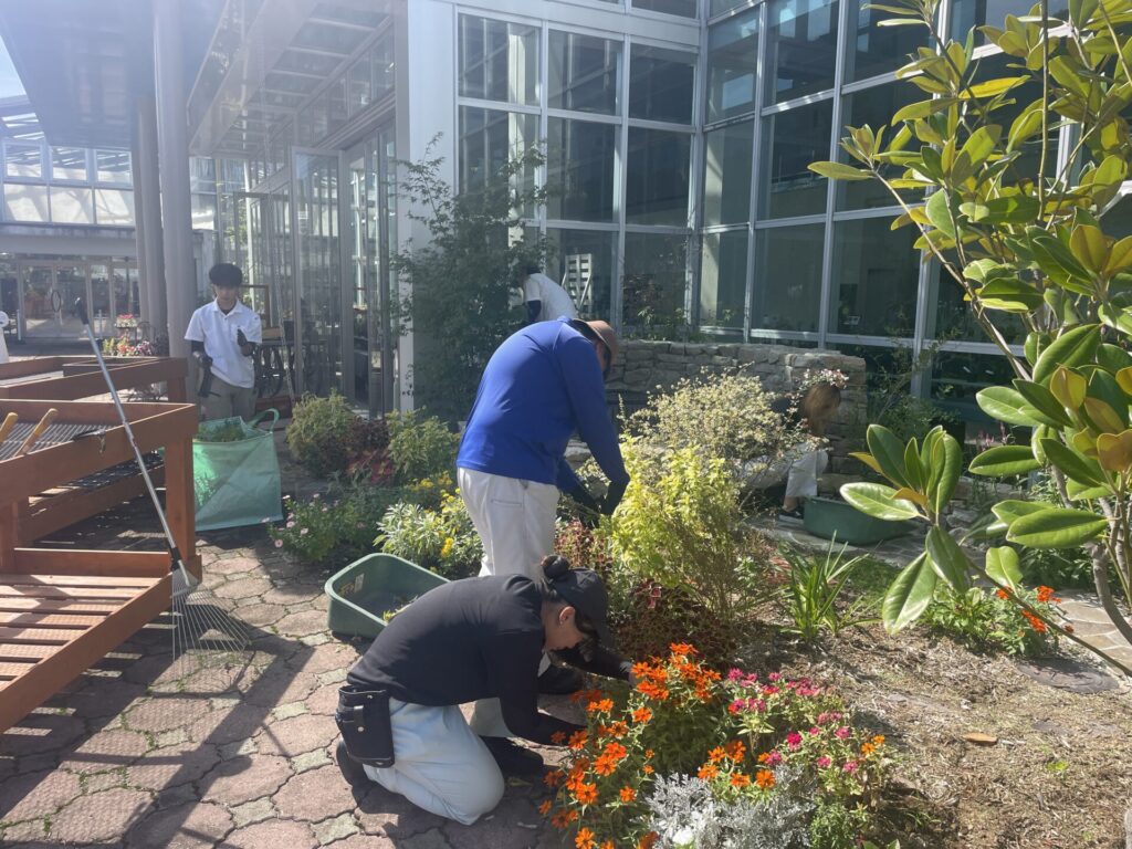 10月8日、造園施工・管理実習Ⅱは、ぎふワールド・ローズガーデン内、当校実習フィールドのメンテナンスを行いました。実習フィールドとともに、昨年整備した、緑の環境プラン大賞で受賞した緑化プランの庭のメンテンナンスも行いました。夏から秋の季節の変わり目に、夏に枯れてしまった植物や花柄摘み、除草を行いました。