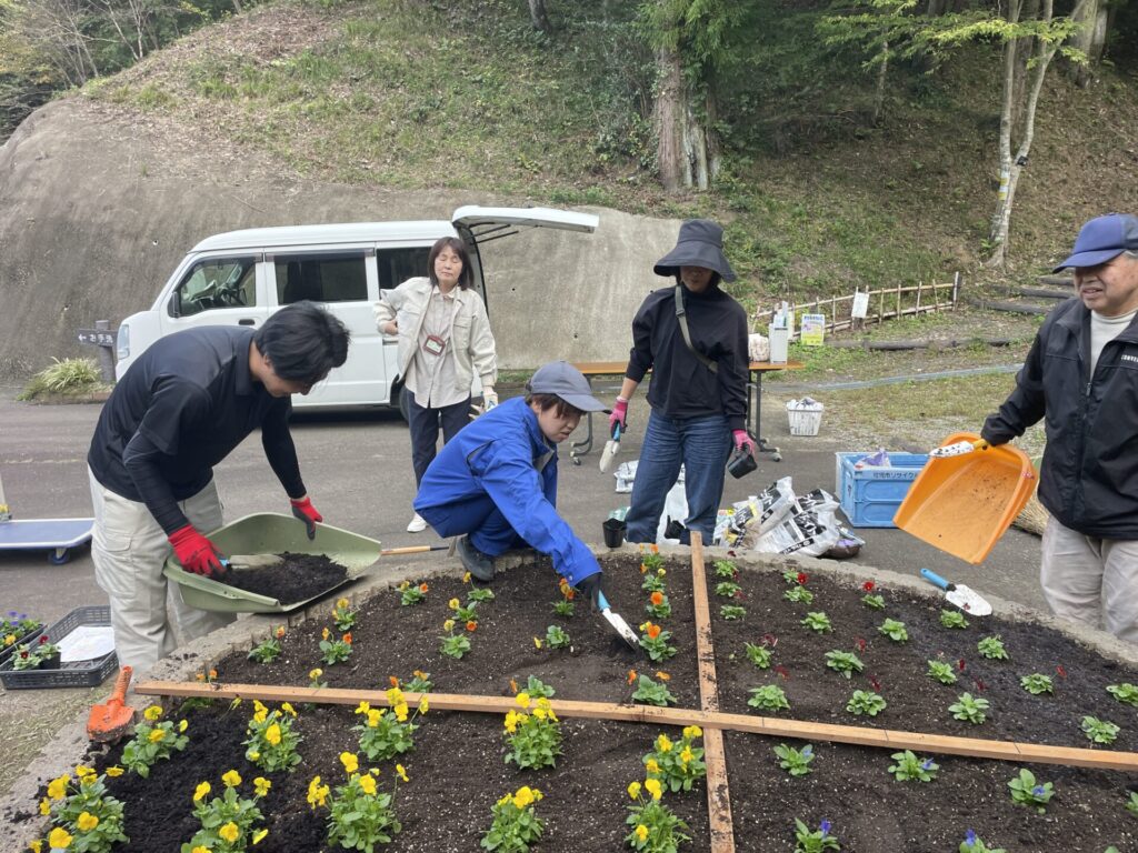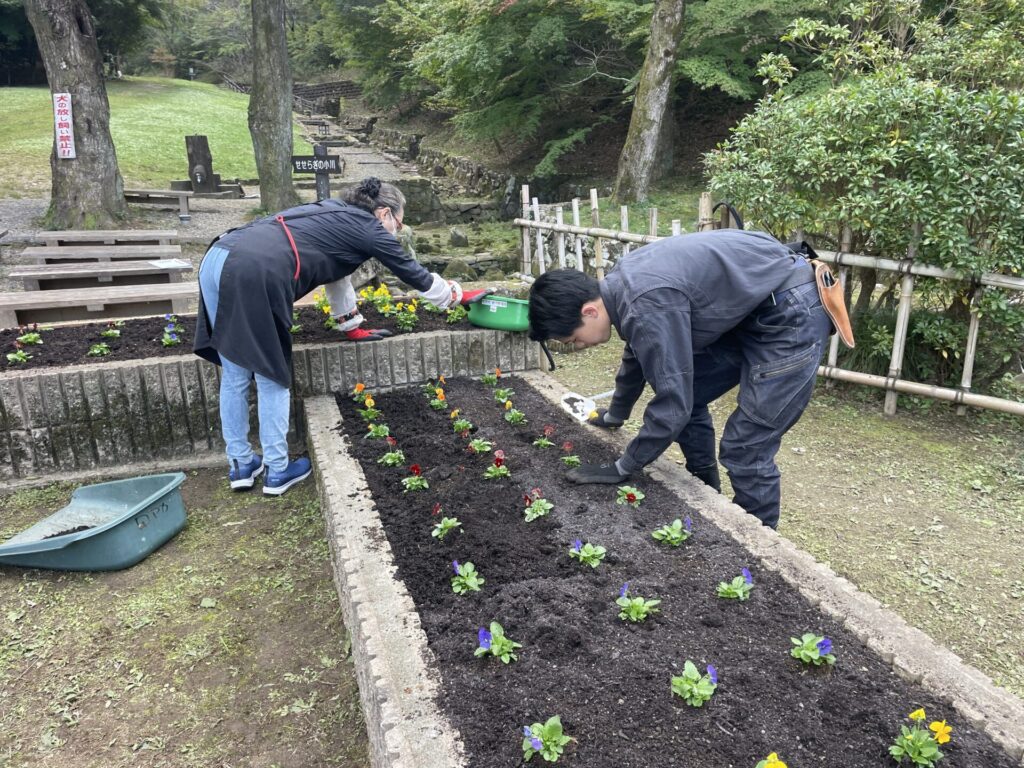 10月24日、可児市が推進している花いっぱい運動の一環として春と秋に花の育て方講座を行っており、講師を務めさせていただいています。一般市民の方にご参加いただき、講義を行った後、公園の花壇に実際に植栽していただいています。植栽作業を学生がサポートしています。地域住民の方と学生との交流を図ることができました。