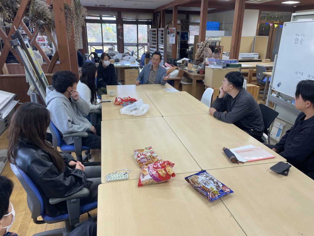 午後は、造園緑化コースの学生との交流会を行いました。授業では聞けなかったお話をたくさんしていただきました。また、卒業研究・卒業制作で取り組んでいることに対しての多くのアドバイスをいただくことができました。