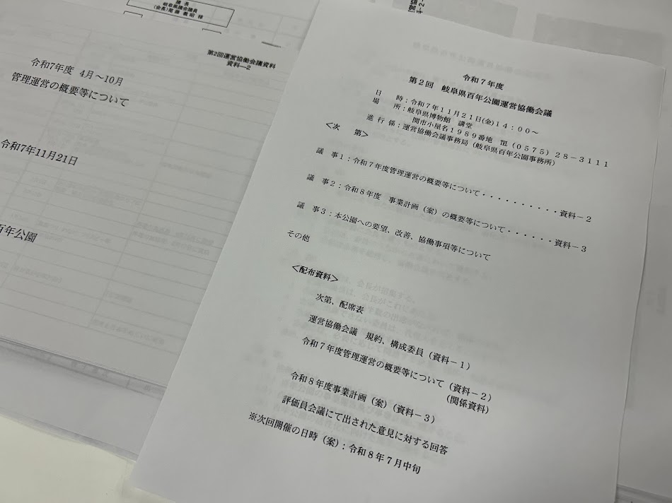 11月22日、令和7年度第2回となる岐阜県百年公園の運営協働会議が開催され、委員として出席しました。