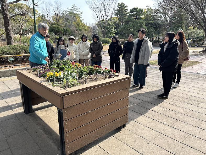 1月15日、名古屋市鶴舞公園において講義と実際に公園で活動されている園芸福祉活動状況の視察です。