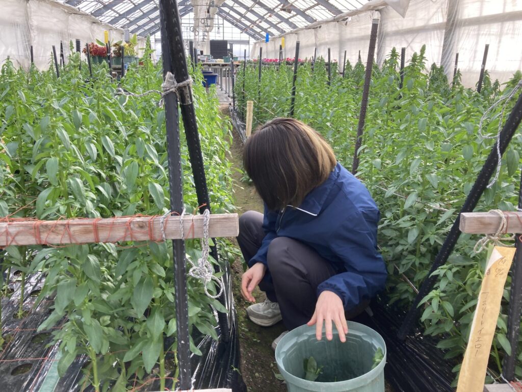 寒い日が続いていますが、植物は季節に応じて成長を続けています。本日の実習ではキンギョソウの枝整理、スプレーマムの収穫と出荷調整、各種苗ものの鉢上げなどを行いました。限られた時間内に予定した作業を終わらせるためには、個々の作業のスピードアップだけでなく、作業の順番や人員の配置など、全体をマネージメントする能力が求められます。作業に適したタイミングを見極めることも大切になってきますので、日ごろから植物をよく観察して、効率よく作業が行えるようになりましょう!