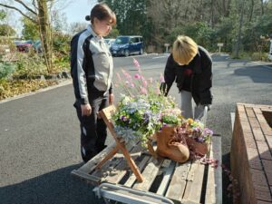 学内の資材と植物に購入した植物を加え4回の授業で完成させていきました。