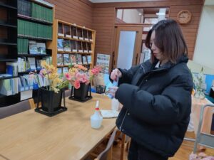 ご希望の花がない場合は代替品を選ぶなど、卒業制作で学んだことが実践的に役立っていました。