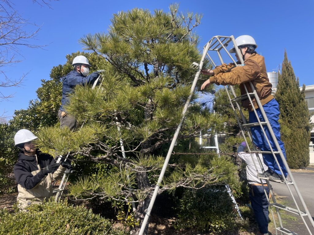 2月18日、造園施工・管理実習Ⅱでは、マツの剪定を行いました。冬場の剪定は、葉むしり(もみあげ)といって、古い葉を手でも...