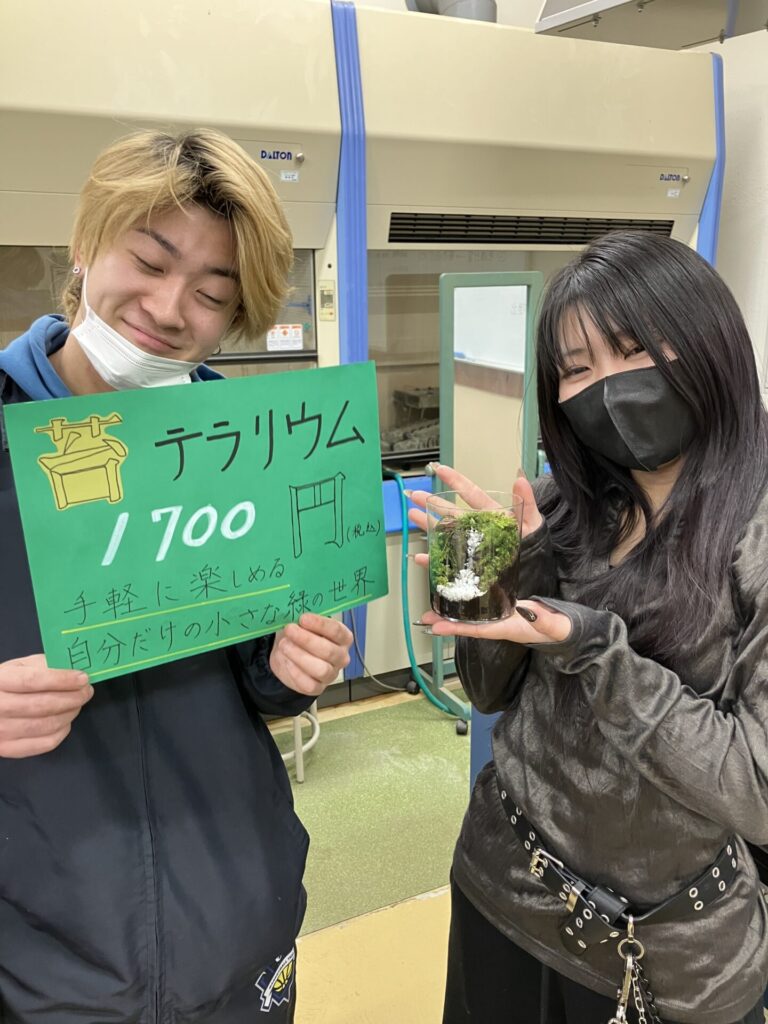 1年生の商品開発演習で、外部講師の小笠原悠先生(本校上級マイスター科卒業生)の指導のもと、園芸店で販売する商品を企画・制作しました。完成した商品「苔テラリウム」、「春の寄せ籠」、「多肉の寄せ植え」を2月18日から名古屋園芸様(名古屋市中区)の店頭で販売中しています。学生の趣向を凝らした商品を、是非お買い求めください。