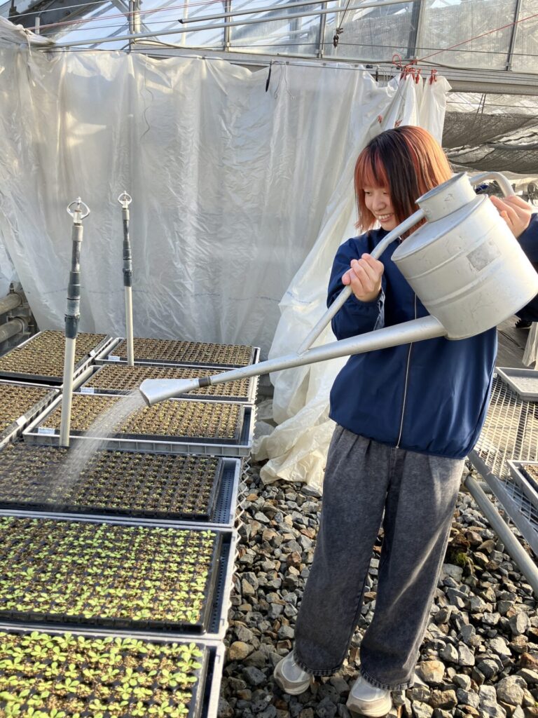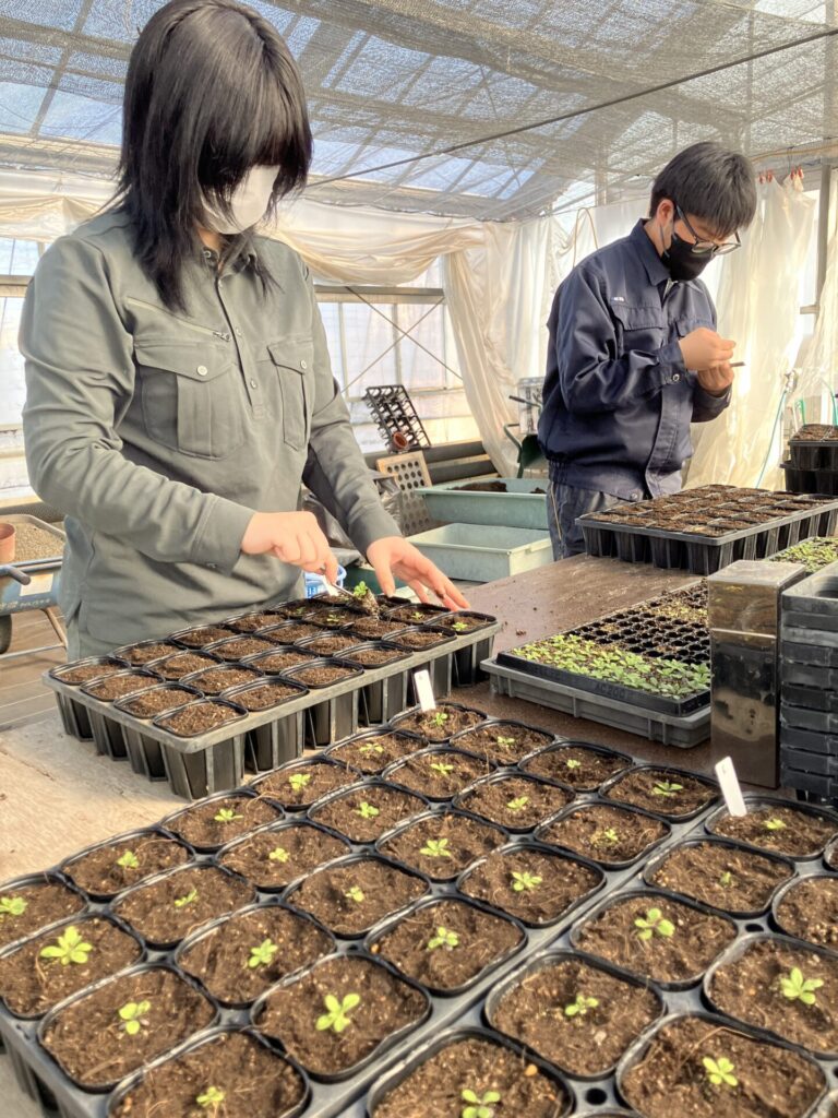 出荷、育苗管理、ポット上げ、課題研究と日毎にメニューが増えていきます。作業効率・品質向上に向けてこれまで学んだ知識と技術を総動員。管理作業にもしっかりと集中できています。