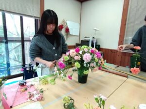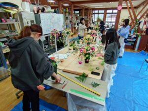 花き装飾コースの学生らは フラワー装飾技能検定試験の練習をしています。