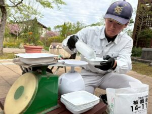 この春から造園緑化コース教員になられた松田先生からも指導を受けながら、どの班も時間内に終わらすことができました。