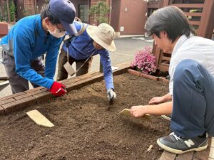 今日の実習内容は、「冬春花壇の撤去」と「夏花壇の植栽準備」です。