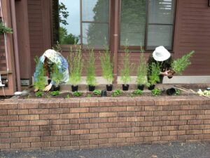 1区画あたり3~5品種、10区画異なるデザインで、学内で生産された苗を中心に定植しました。