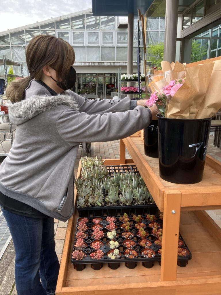4月29日 ぎふワールド・ローズガーデン花トピアで生産物販売を行いました。花き生産コース2年生が商品構成・店舗レイアウト...