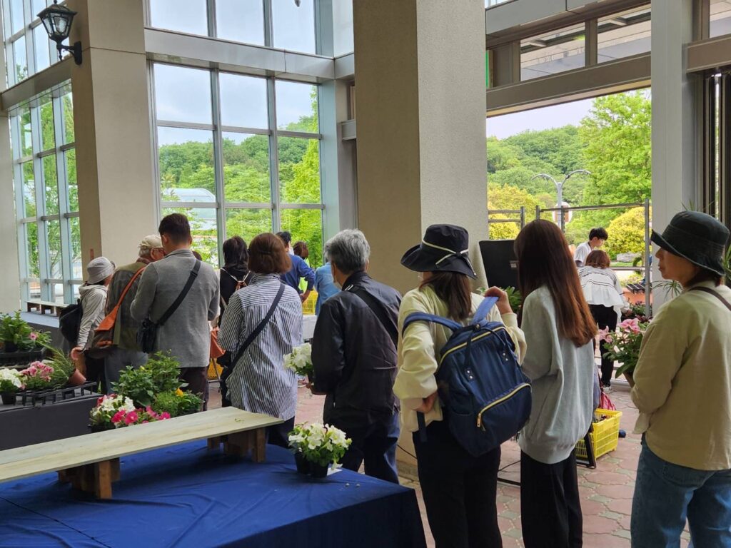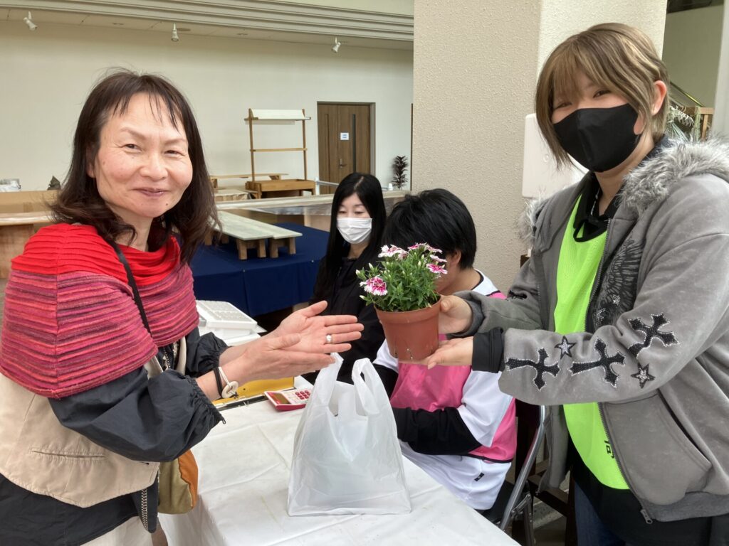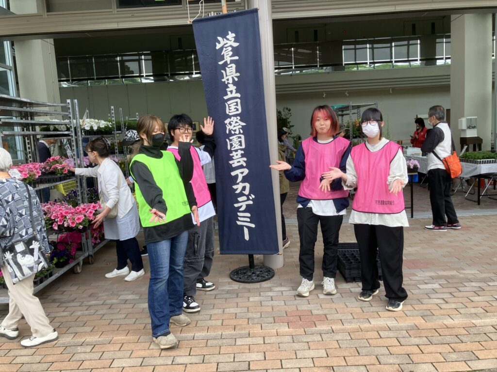 ぎふワールド・ローズガーデン花トピアで生産物販売を行いました。花き生産コース2年生が商品構成・店舗レイアウトを考案し販売に臨みました。祝日で天気もまずまずとあって、午前中には行列ができるほどの賑わいでした。