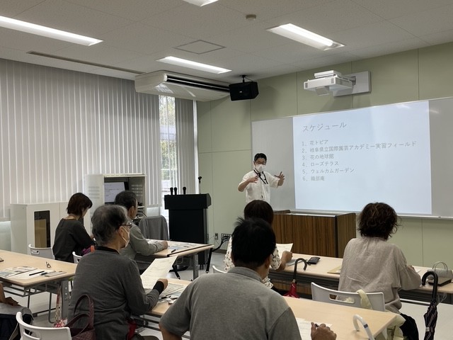 開催日:10月19日(日) 一般向け講座 公園であなたの庭のアイディアを探そう 10月19日(日)に生涯学習講座を開催しました。 今回はぎふワールド・ローズガーデンの園内を巡りながら、植栽について相田特任教授が解説しました。実際の庭園を見ながら解説を聞くことでより詳細な部分を知る事ができる良い時間だったのではないでしょうか。解説を通して植栽のヒントが得られれば幸いです。 アンケート結果