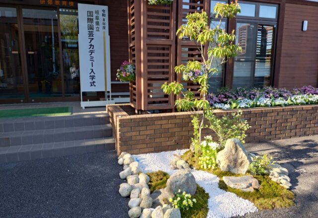 5月12日に花フェスタ記念公園で始まった「ぎふ国際ローズフェスティバル」のローズマーケットでは、園芸アカデミーのPRも行い、生産コースで育てた21種約1400ポットの花苗や切花を学生が自ら販売して、多くの来園者の方々にお買い求めいただき、ほぼ完売しました。ただ単に販売するのではなく、栽培の説明を加えたり花のコーディネートをアドバイスしたり、学生たちは、こうような機会を経験しながらお客さんとのコミュニケーション能力も高めていくことになるでしょう。岐阜県知事にも様子をご視察いただきました。