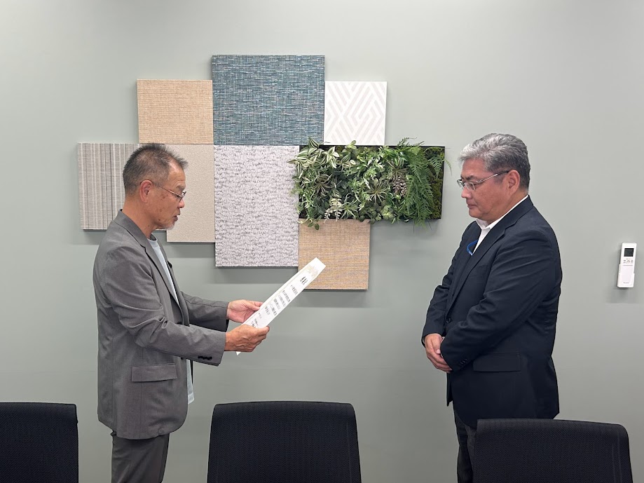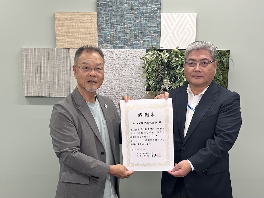 10月7日、ヤハギ緑化(株)様に伺い、平田社長に感謝状をお渡ししました。