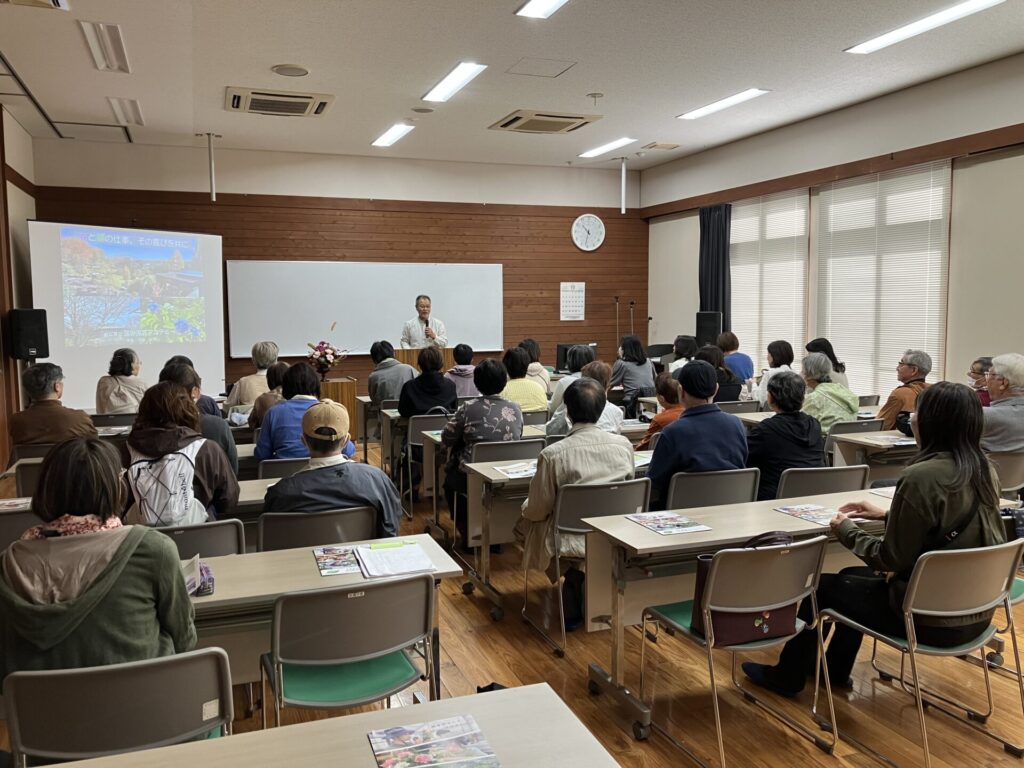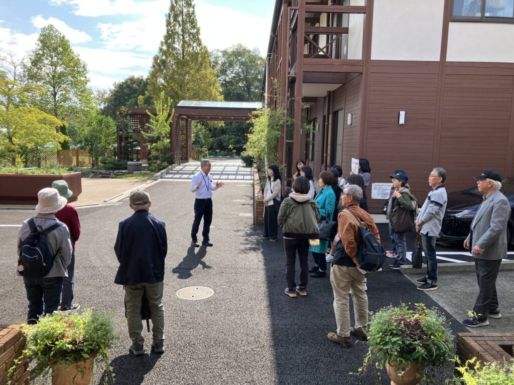 10月27日(月)、名古屋市名城公園ボランティア活動団体の皆さんが研修の一環として総勢40名で本学を視察され、説明と現地案内を行いました。