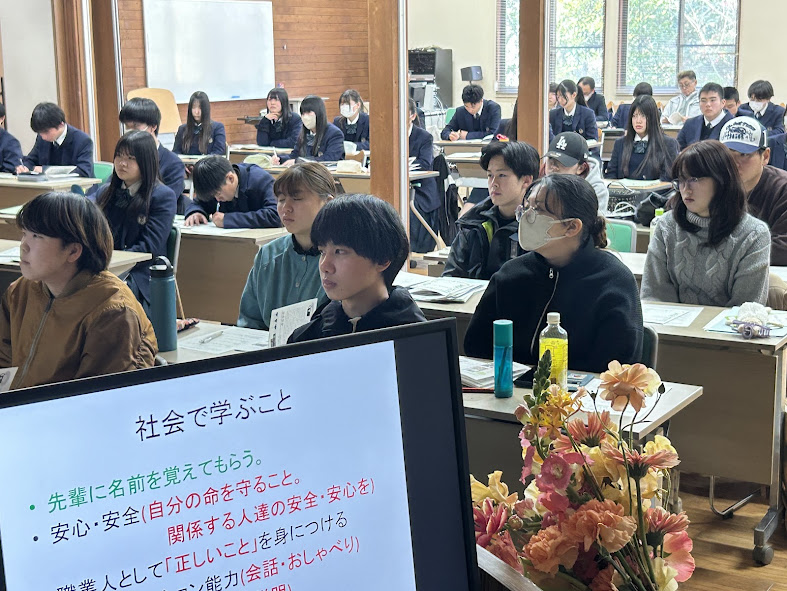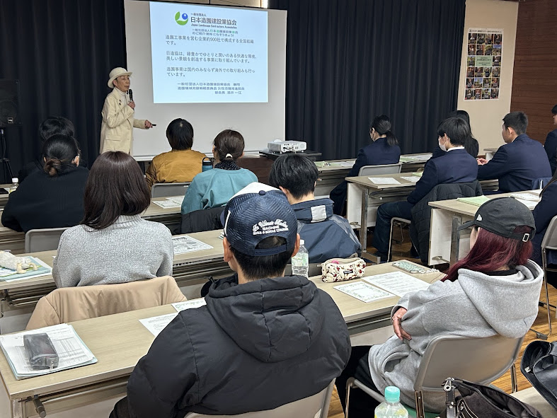 2月12日、(一社)日本造園建設業協会女性活躍推進部会による「出前講座」を開催しました。今年度も本学造園緑化コース1年生と岐阜県立加茂農林高校環境デザイン科1年生が受講しました。